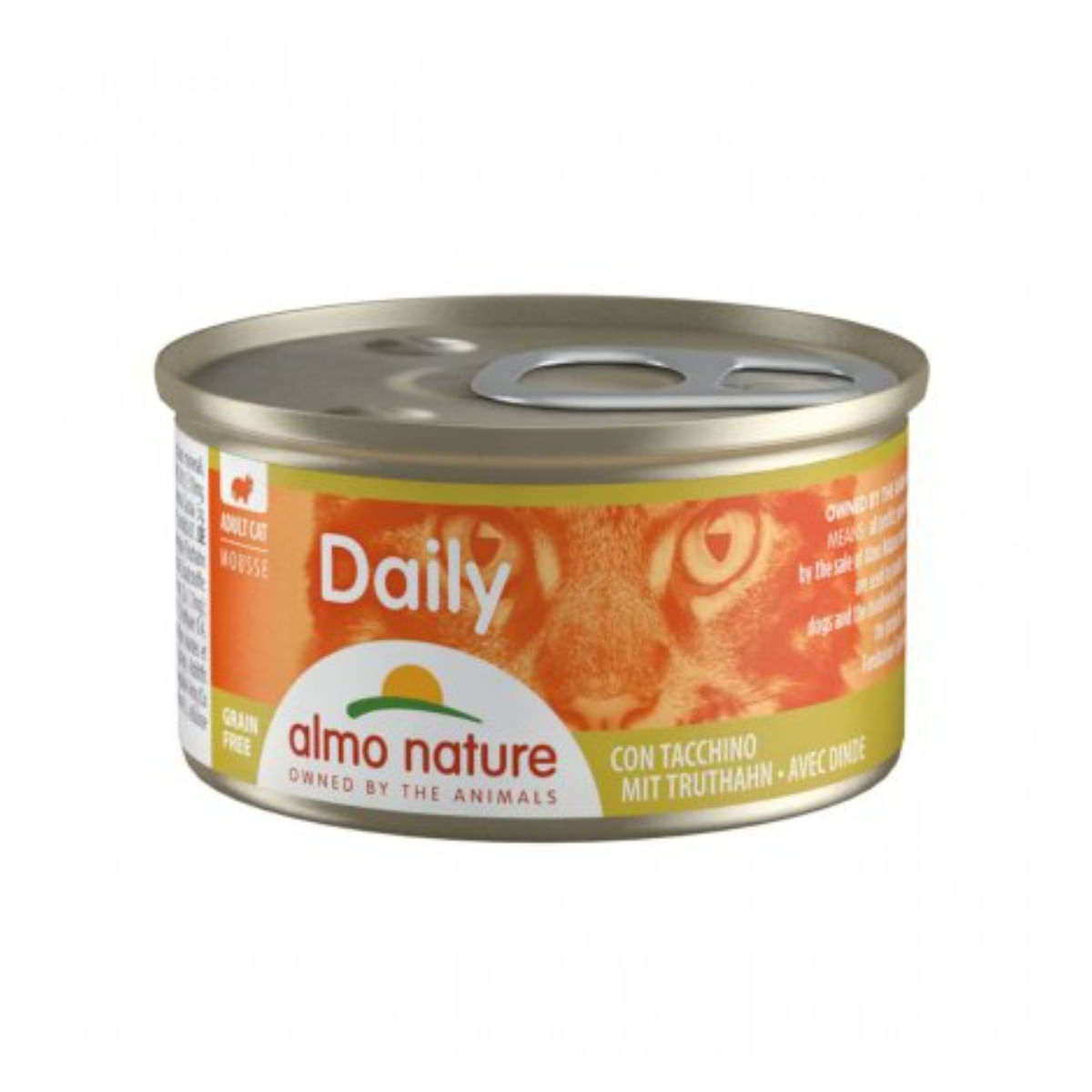 Rasfata-ti pisica cu Almo Nature Daily Cat, conserva curcan mousse! Aceasta hrana umeda delicioasa este perfecta pentru pisicile adulte, oferindu-le o dieta sanatoasa si echilibrata, plina de ingrediente naturale.