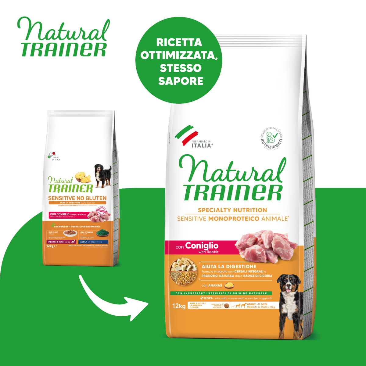 NATURAL TRAINER Speciality Nutrition Sensitive este alegerea perfecta pentru cainii cu un sistem digestiv mai sensibil. Cu o reteta monoproteica din carne de iepure, aceasta hrana uscata nu doar ca ofera nutritie de calitate, dar si un gust delicios pe care prietenul tau patruped il va adora!