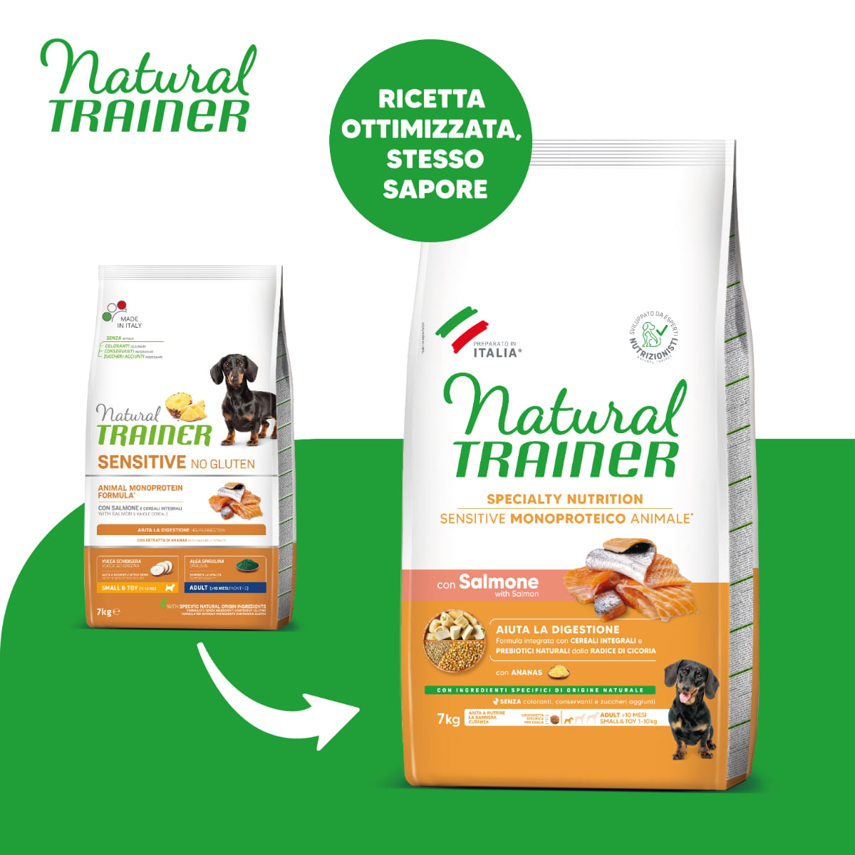 NATURAL TRAINER Speciality Nutrition Sensitive este hrana uscata perfecta pentru cainii mici si sensibili, avand la baza somonul ca sursa monoproteica. Cu o formula adaptata pentru un sistem digestiv delicat, acest produs va oferi companionului dumneavoastra un gust delicios si o nutritie de calitate superioara.