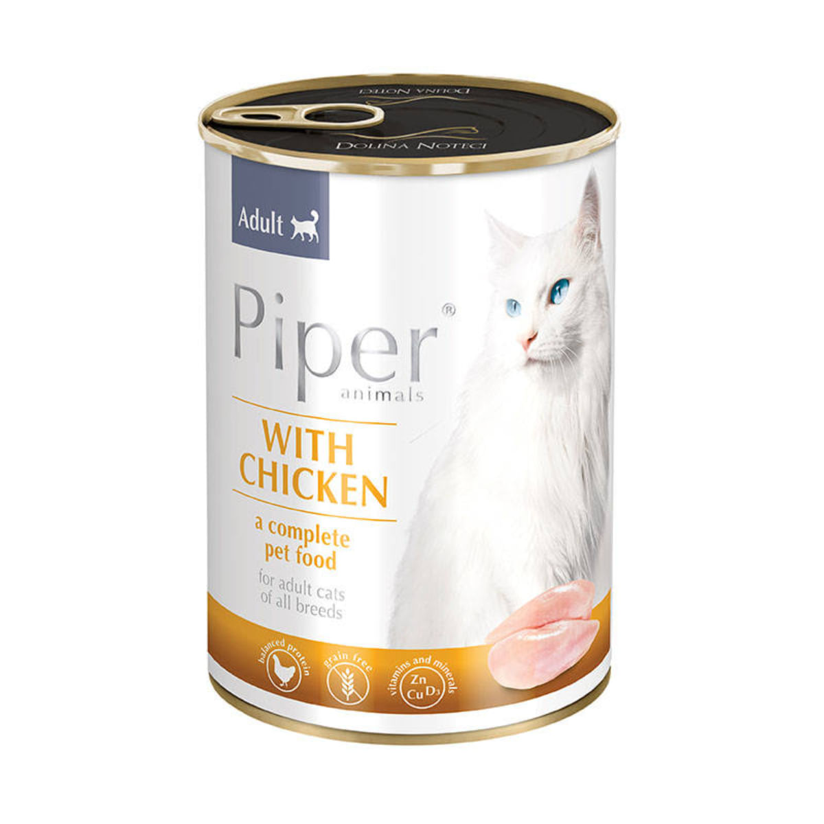 Rasfatati pisica dumneavoastra cu Conserva pentru pisici Piper Adult cu pui! Aceasta hrana delicioasa si nutritiva este special conceputa pentru a satisface toate nevoile nutritionale ale pisicilor adulte, asigurand o dieta echilibrata si sanatoasa.