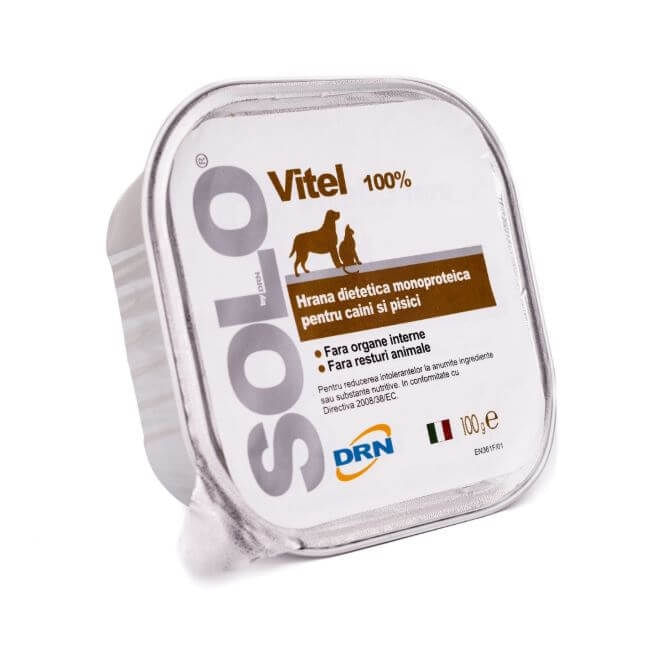 Solo DRN Dog Cat Vitel este deliciul perfect pentru patrupedul tau! Cu un gust irezistibil, acest aliment va face ca fiecare masa sa fie o sarbatoare pentru catelul sau pisica ta.