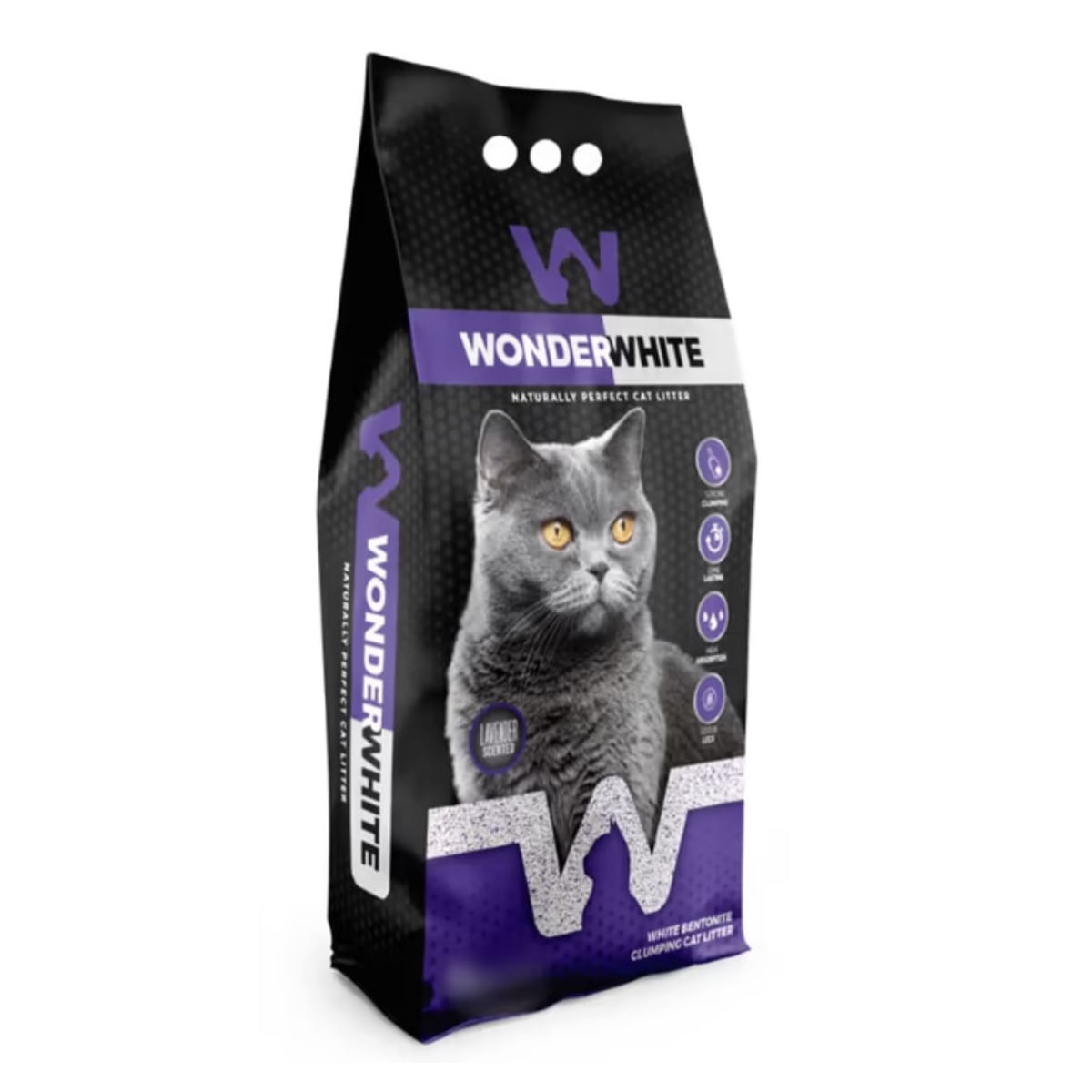 Asternutul pentru pisici WONDERWHITE cu aroma de lavanda este alegerea perfecta pentru orice iubitor de feline! Cu un design inovator si o formula super premium, acest asternut nu doar ca elimina mirosurile neplacute, dar ofera si un mediu curat si placut pentru pisica ta.