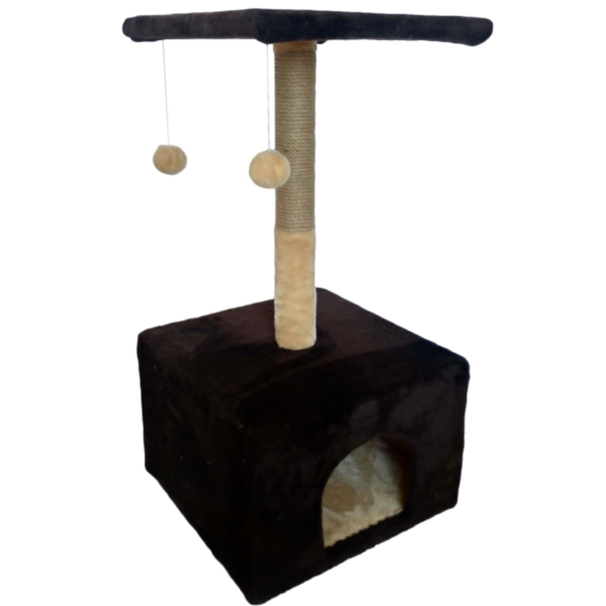 AGILITY, ansamblu de joaca pisici, 1 etaj, 1 casuta, lemn si plus, elemente atarnate, elemente de zgariat, maro, 80cm