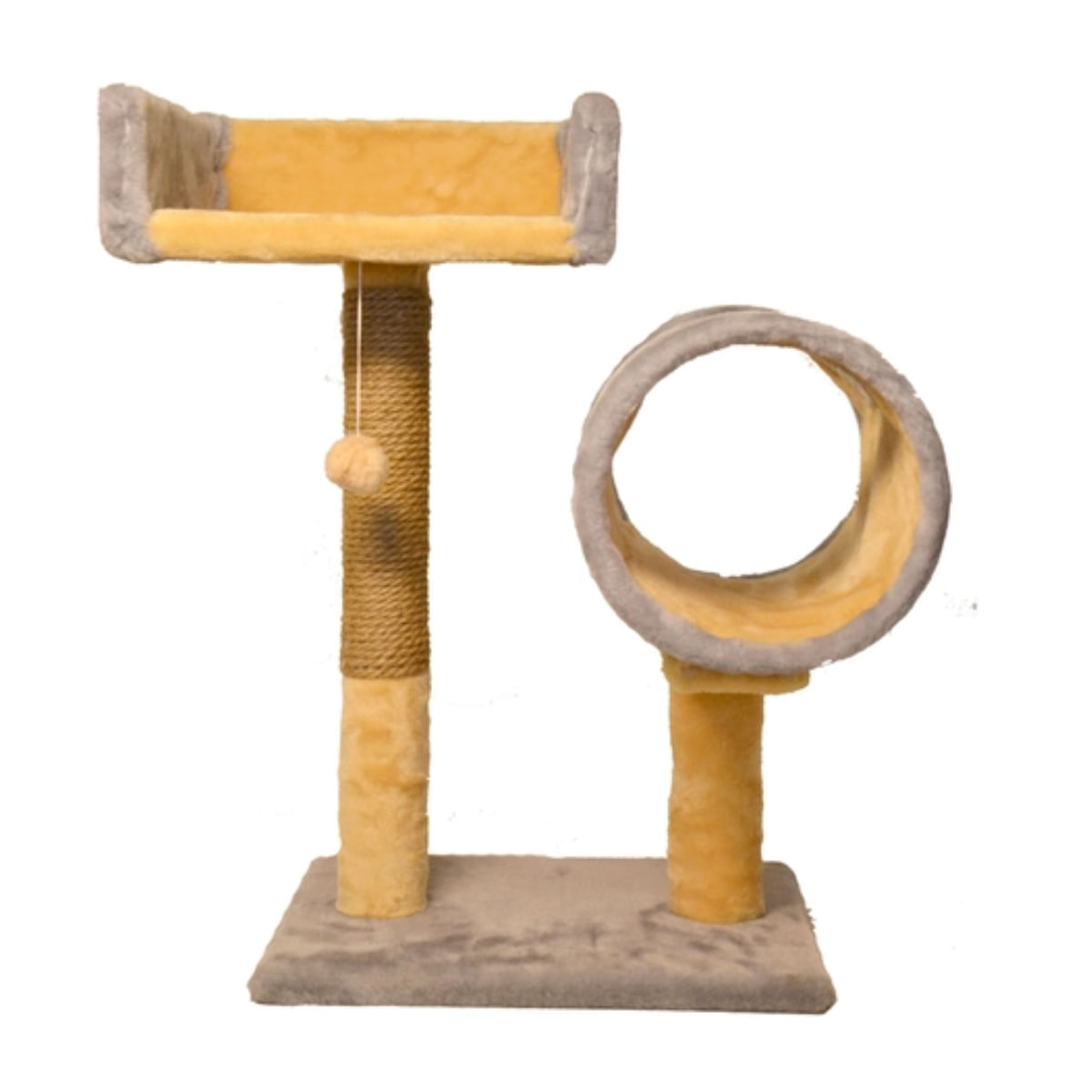 AGILITY, ansamblu de joaca pisici, 2 etaje, lemn si plus, elemente tunel, elemente de zgariat, bej si gri, 75cm