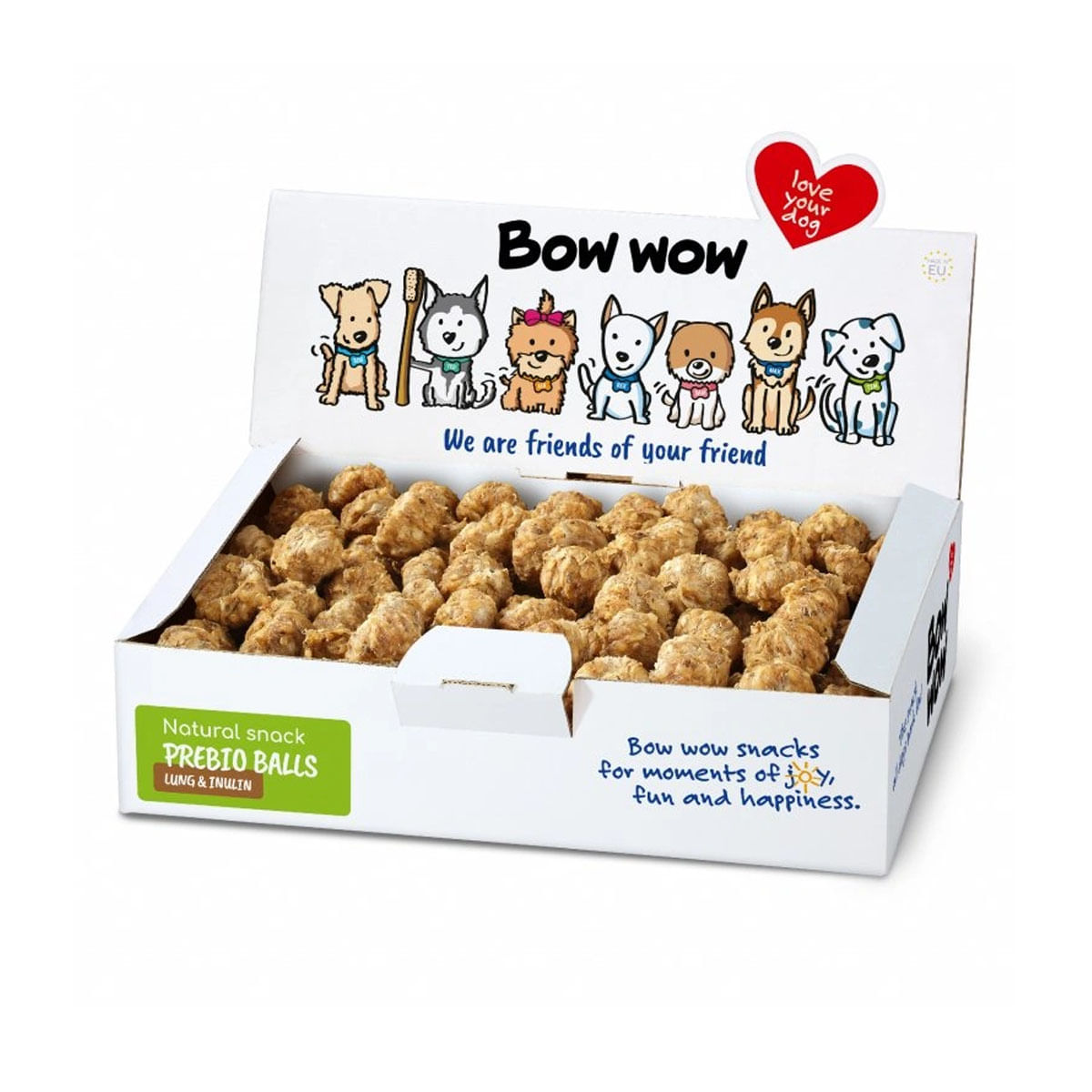 Mingi cu Organe de Vita Bow Wow, 900 g, sunt snack-uri special concepute pentru caini, care combina aroma delicioasa cu beneficiile nutritionale. Aceste mingi sunt realizate din ingrediente de calitate, fiind o alegere ideala pentru a rasfata si recompensa cainele tau. Cu un gust intens si o textura atragatoare, aceste snack-uri nu doar ca vor satisface apetitul cainelui tau, dar vor contribui si la o dieta echilibrata. Fie ca le oferi ca recompensa in timpul antrenamentelor, fie ca le folosesti pentru a-i face o surpriza, Mingi cu Organe de Vita sunt mereu o alegere inspirata.