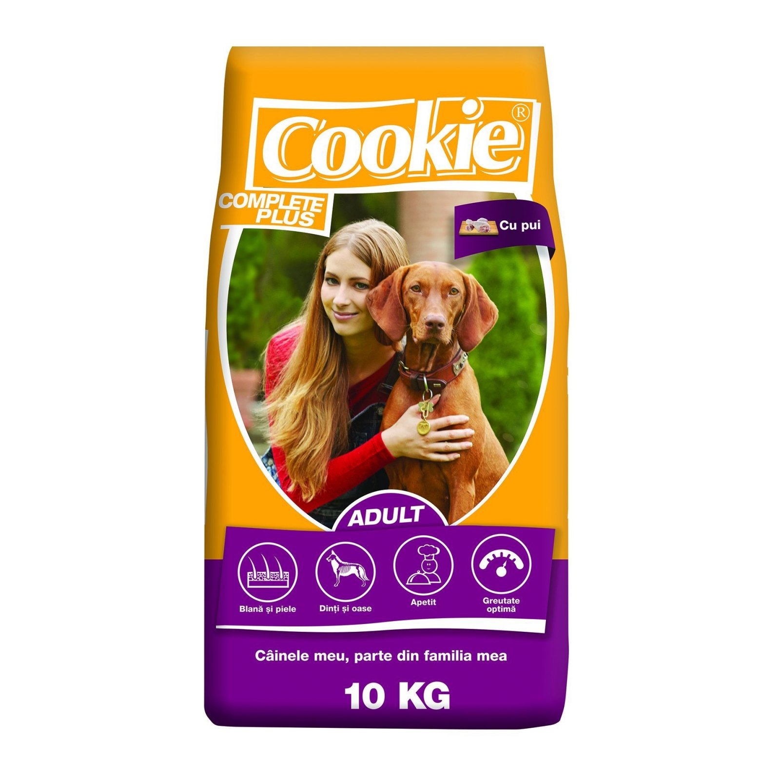 Cookie Complete Plus Adult cu Pui este un aliment de inalta calitate, perfect adaptat nevoilor nutritionale ale cainilor adulti. Cu un gust delicios de pui, acest sortiment asigura o nutritie completa si echilibrata, contribuind la sanatatea generala a cainelui tau. Formula sa este bogata in proteine si nutrienti esentiali, sustinand astfel energia si vitalitatea cainelui tau. Ambalajul de 10 kg este perfect pentru a asigura o alimentatie constanta si sanatoasa, fiind usor de depozitat si utilizat. Alege Cookie Complete Plus pentru a oferi cainelui tau cele mai bune ingrediente care sa ii sustina stilul de viata activ si sanatos.