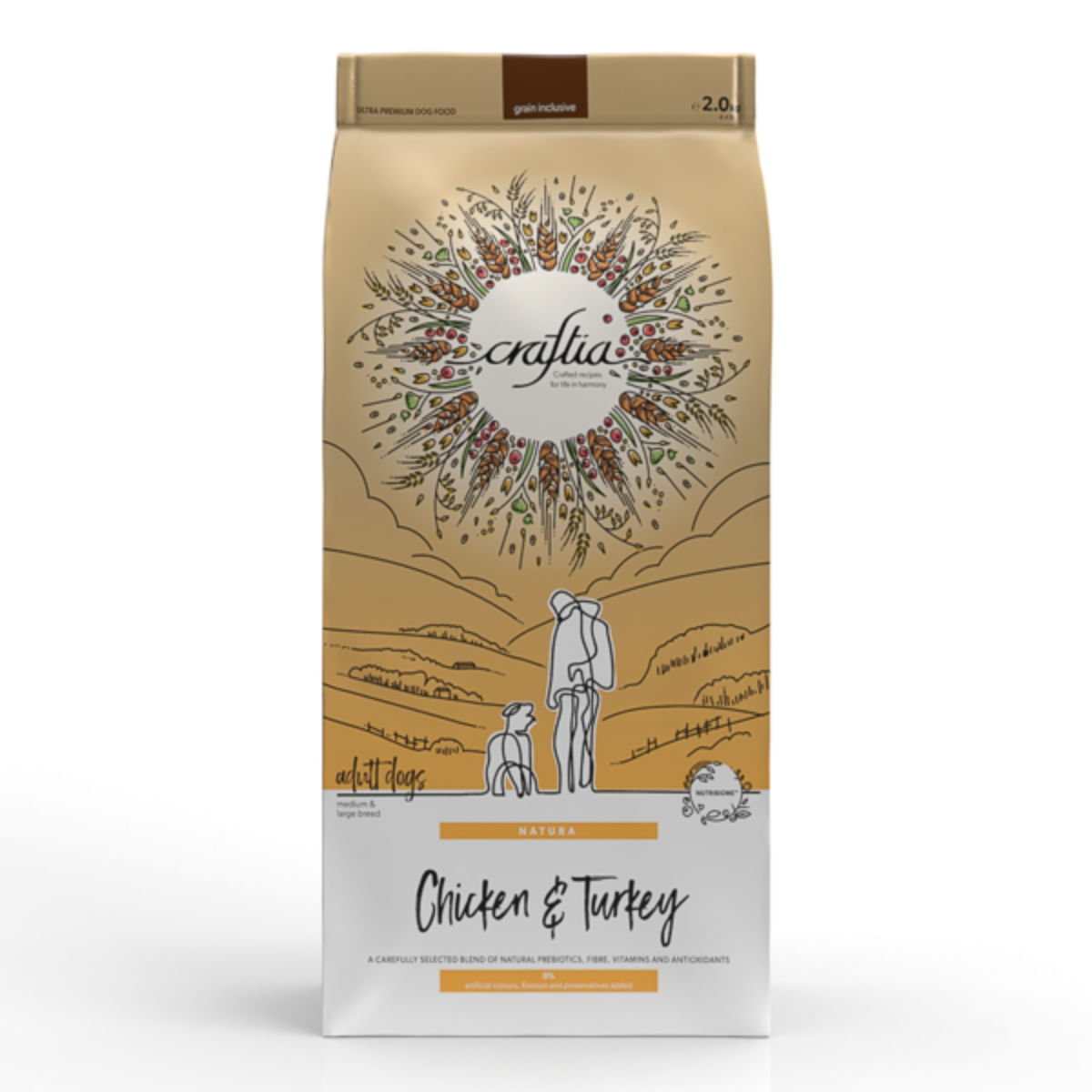 CRAFTIA Natura, M-XL, Pui si Curcan, hrana uscata caini, 2kg