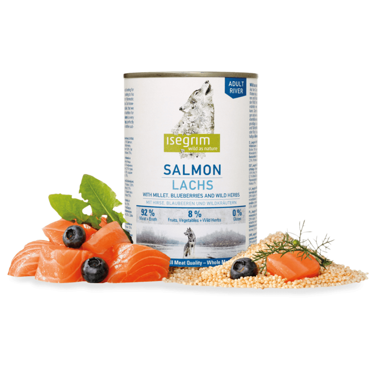 Deliciul perfect pentru patrupedul tau! ISEGRIM Somon este o conserva umeda fara cereale, plina de arome si nutrienti esentiali, care va face ca fiecare masa sa fie o experienta de neuitat pentru cainele tau.