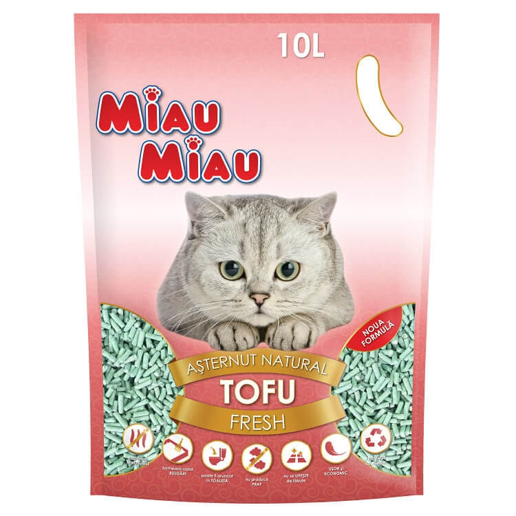 MIAU MIAU, Fresh, asternut igienic pisici, peleti, tofu, aglomerant, ecologic, biodegradabil, 10l
