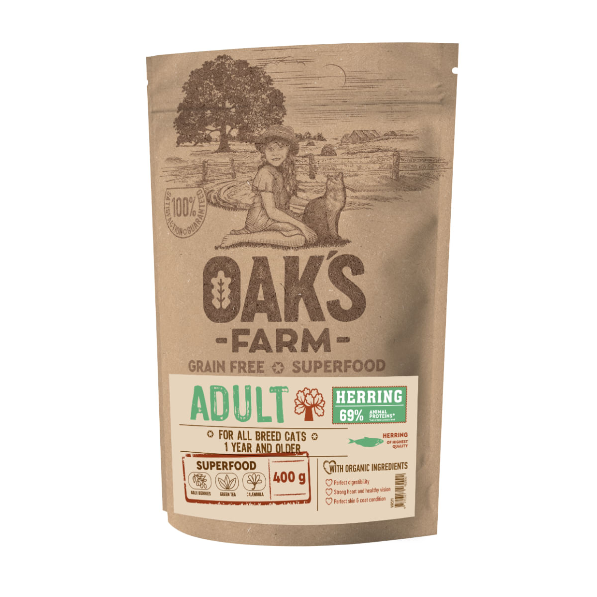 OAK'S FARM, Hering, hrana uscata fara cereale pisici, 6kg
