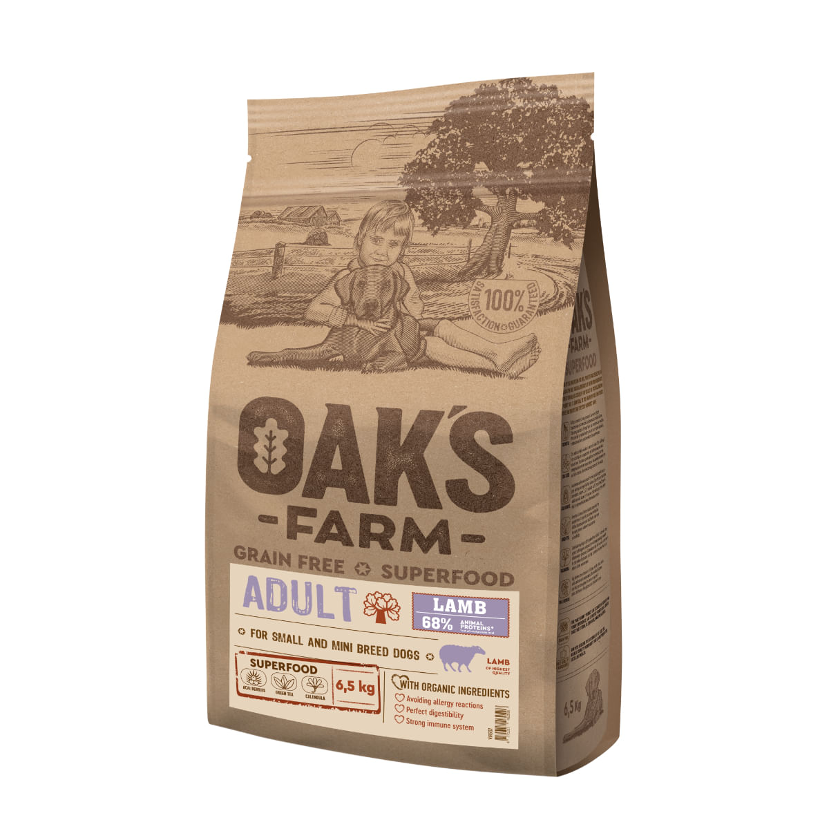 OAK'S FARM Mini Adult cu miel este alegerea perfecta pentru cateii tai mici si activi! Aceasta hrana uscata fara cereale ofera un gust delicios si nutritie de calitate, asigurandu-se ca prietenul tau patruped se bucura de fiecare masa.