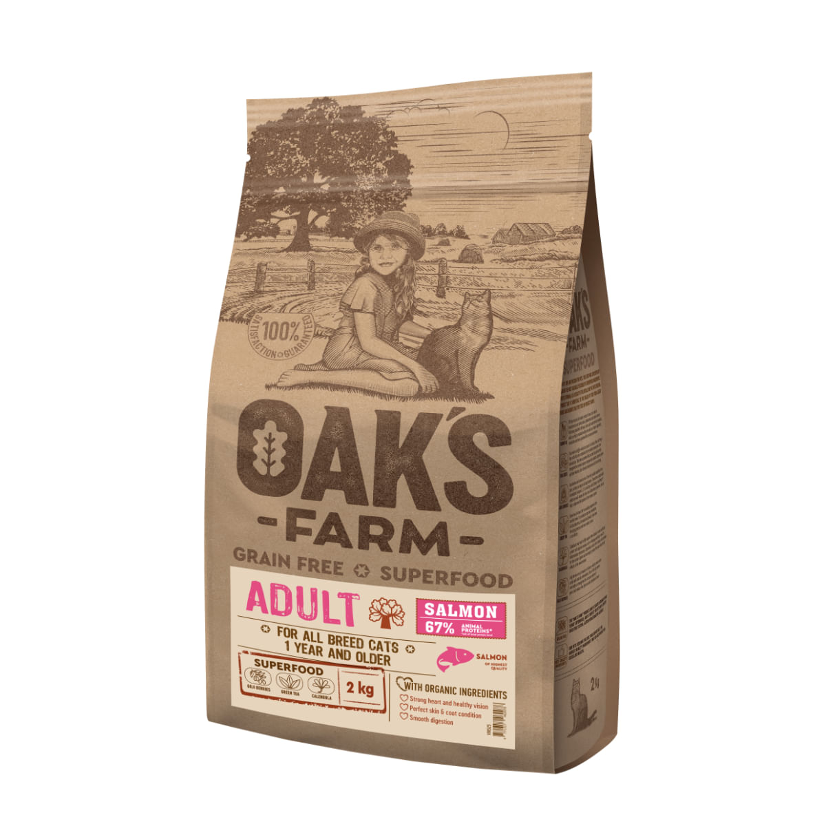 OAK'S FARM, Somon, hrana uscata fara cereale pisici, 2kg