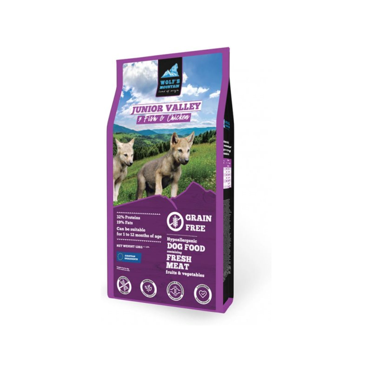 Hrana WOLF'S MOUNTAIN Junior Valley este alegerea perfecta pentru cateii in crestere! Cu un amestec delicios de peste si pui, aceasta hrana uscata fara cereale ii ofera nutrientii esentiali pentru o dezvoltare sanatoasa si fericita.