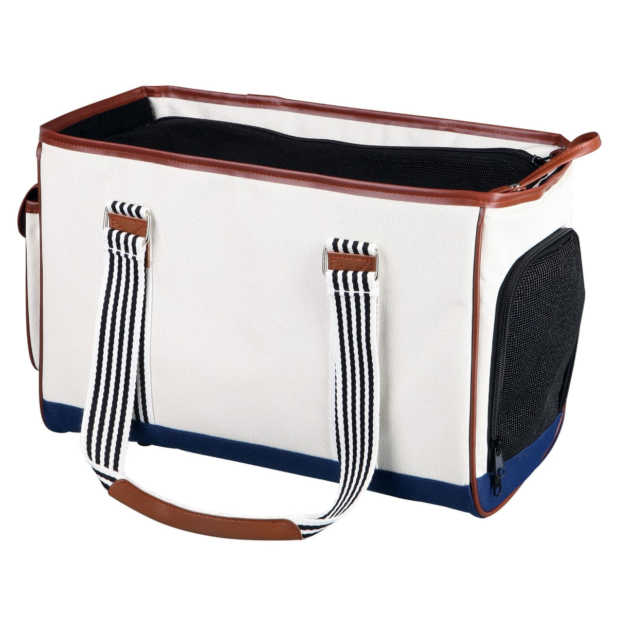 Geanta de transport TRIXIE Elisa este special conceputa pentru a aduce confort atat pentru tine, cat si pentru catelul sau pisica ta. Realizata din poliester rezistent, aceasta geanta are dimensiuni de 26 x 20 x 41 cm si poate sustine animale de pana la 5 kg. Cu o deschidere frontala si superioara, accesul animalutului in geanta devine o joaca de copii. Inclusiv buzunarele laterale ofera spatiu suplimentar pentru a transporta accesorii necesare, precum hrana, jucarii sau documente. Culoarea alba confera un aspect curat si modern, fiind usor de asortat cu alte articole de calatorie.