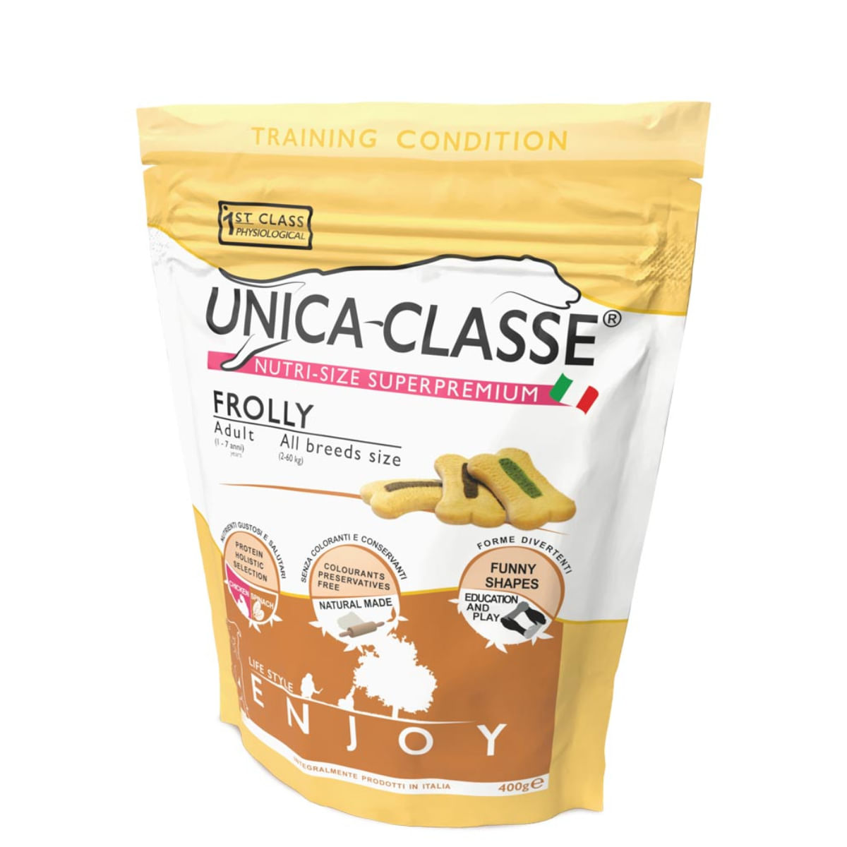 UNICA Classe Frolly, XS-XL, Pui, punguta recompense caini, 400g