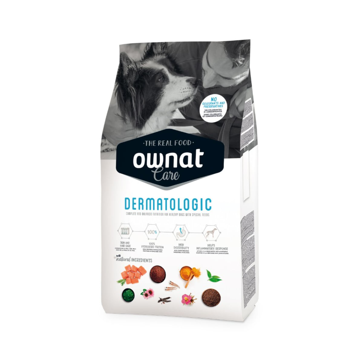 OWNAT Care Dermatologic este hrana uscata perfecta pentru cainii de toate dimensiunile, de la XS la XL. Cu un gust delicios de somon, aceasta formula speciala ajuta la mentinerea unei pieli sanatoase si a unei blanite stralucitoare, asigurandu-le cainilor tai o viata fericita si sanatoasa.