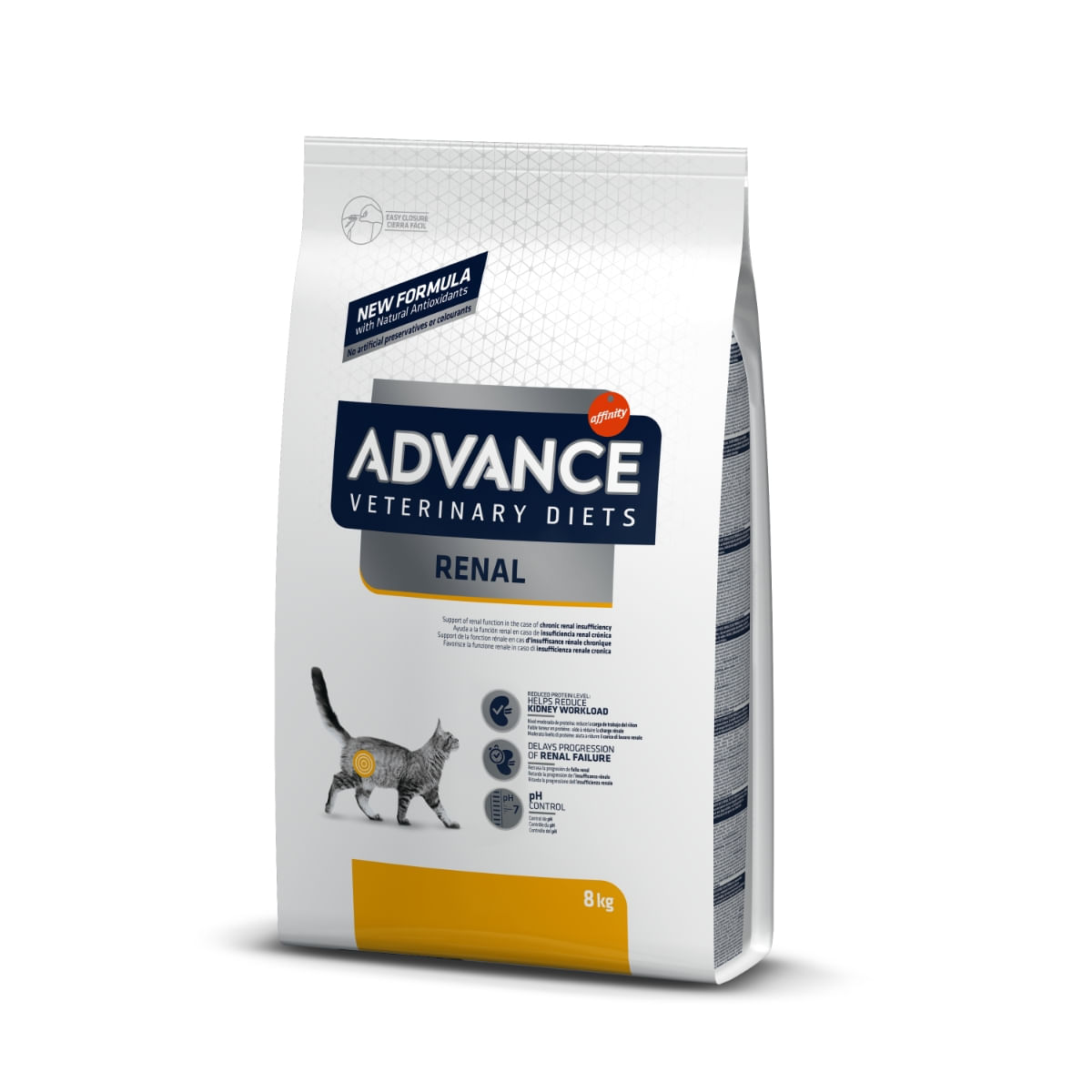 ADVANCE Veterinary Diets Cat Renal este alegerea ideala pentru pisicile cu afectiuni renale cronice. Cu o formula special conceputa, aceasta hrana uscata sustine sanatatea sistemului renal al pisicii tale, oferindu-i totodata gustul delicios pe care il adora.